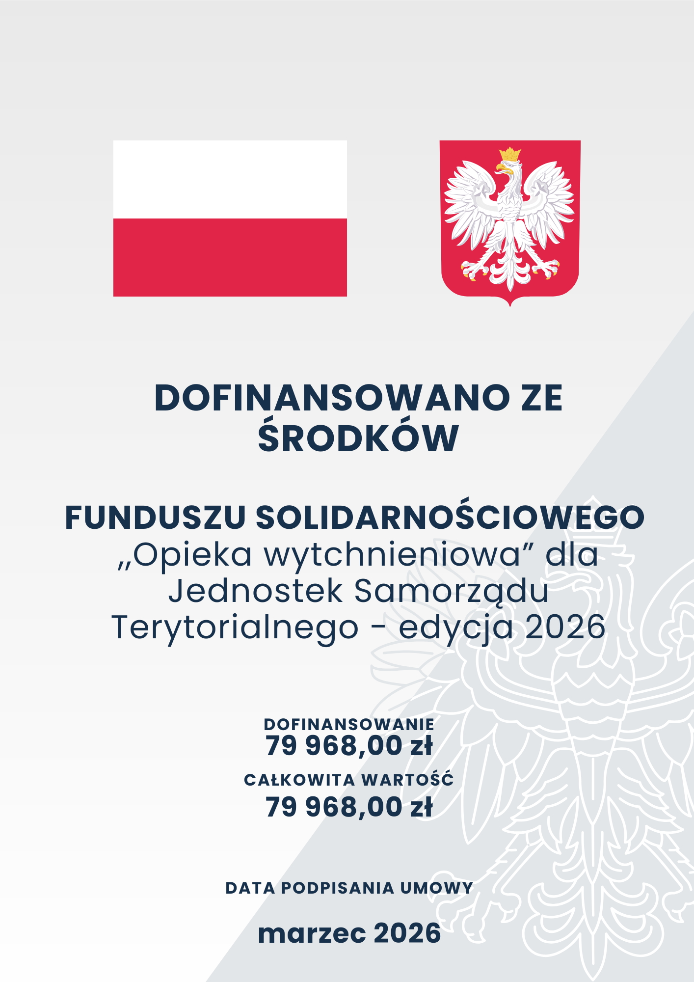 Program finansowany jest ze środków Funduszu Solidarnościowego otrzymanych od Ministra Rodziny, Pracy i Polityki Społecznej.